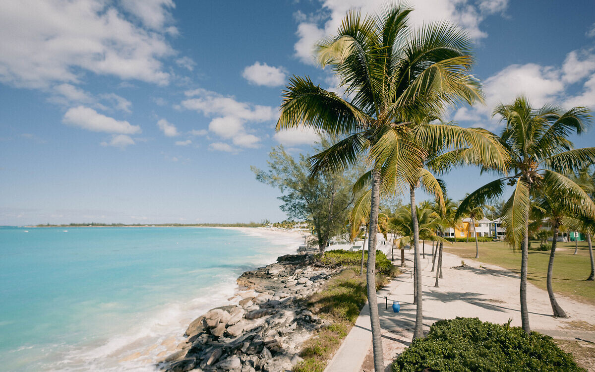 mar con playa y palmeras en Bahamas